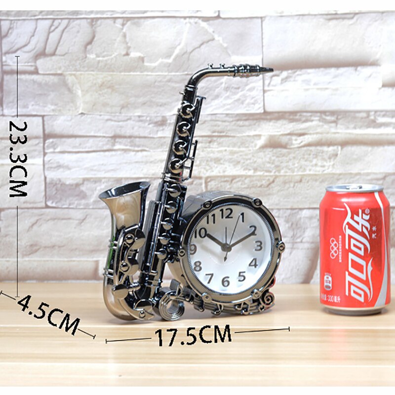 Letar du efter en bordsklocka som sticker ut från mängden? Denna fantastiska bordsklocka i metall, formad som en saxofon, är den perfekta detaljen för att ge ditt hem eller kontor en touch av musikalisk charm och elegans. Den är inte bara en praktisk tidsvisare, utan också ett konstverk som fångar ögat och sätter igång samtal. Föreställ dig den stående på din bokhylla, skrivbord eller nattduksbord – den blir garanterat en höjdpunkt i rummet!