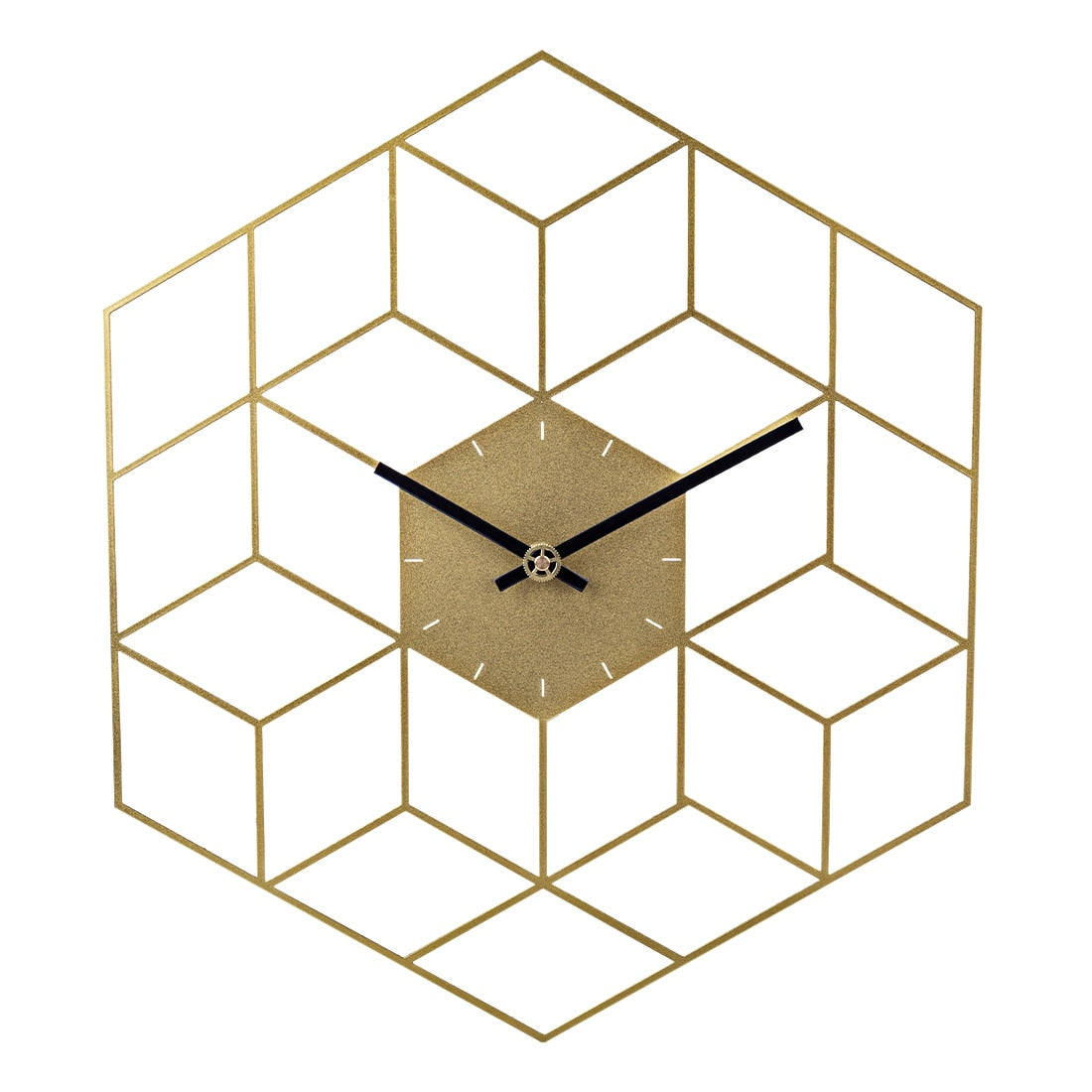 Förvandla ditt vardagsrum, kontor eller sovrum med vår fantastiska Geometriska Väggklocka i Metall Hexagon. Denna klocka är inte bara en praktisk tidsmätare utan också ett konstverk som lyfter din inredning. Med sin unika hexagonala design, fylld med illusionen av 3D-kuber, skapar den ett dynamiskt och intressant uttryck på din vägg. Den varma guldfärgen ger en lyxig touch som smälter perfekt in i både moderna och klassiska miljöer. Låt denna klocka bli pricken över i:et som uttrycker din personliga stil och känsla för design.