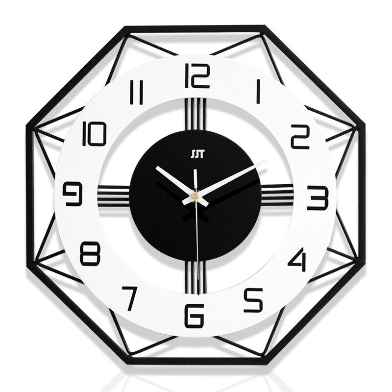 Letar du efter den perfekta detaljen som lyfter ditt hem? Vår Geometriska Väggklocka i Metallram är mer än bara en tidsvisare; den är ett konstverk. Med sin slående åttekantiga design och robusta svarta metallram, skapar den en djärv kontrast mot den vita urtavlan och de tydliga, svarta siffrorna. Föreställ dig hur den blir blickfånget i ditt vardagsrum, hall eller kontor, och erbjuder inte bara precision utan också en sofistikerad estetik. Den här klockan är designad för dig som uppskattar minimalistisk elegans med en modern twist.