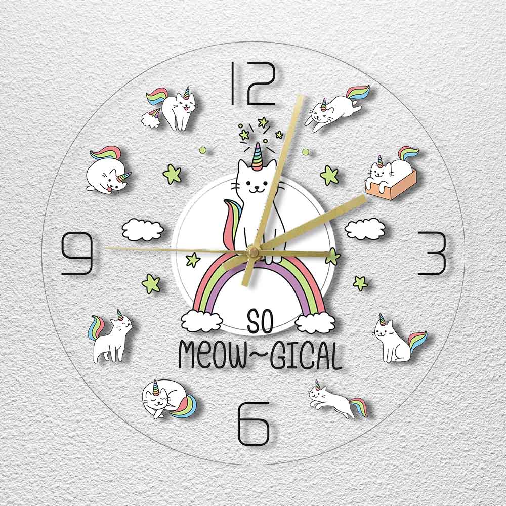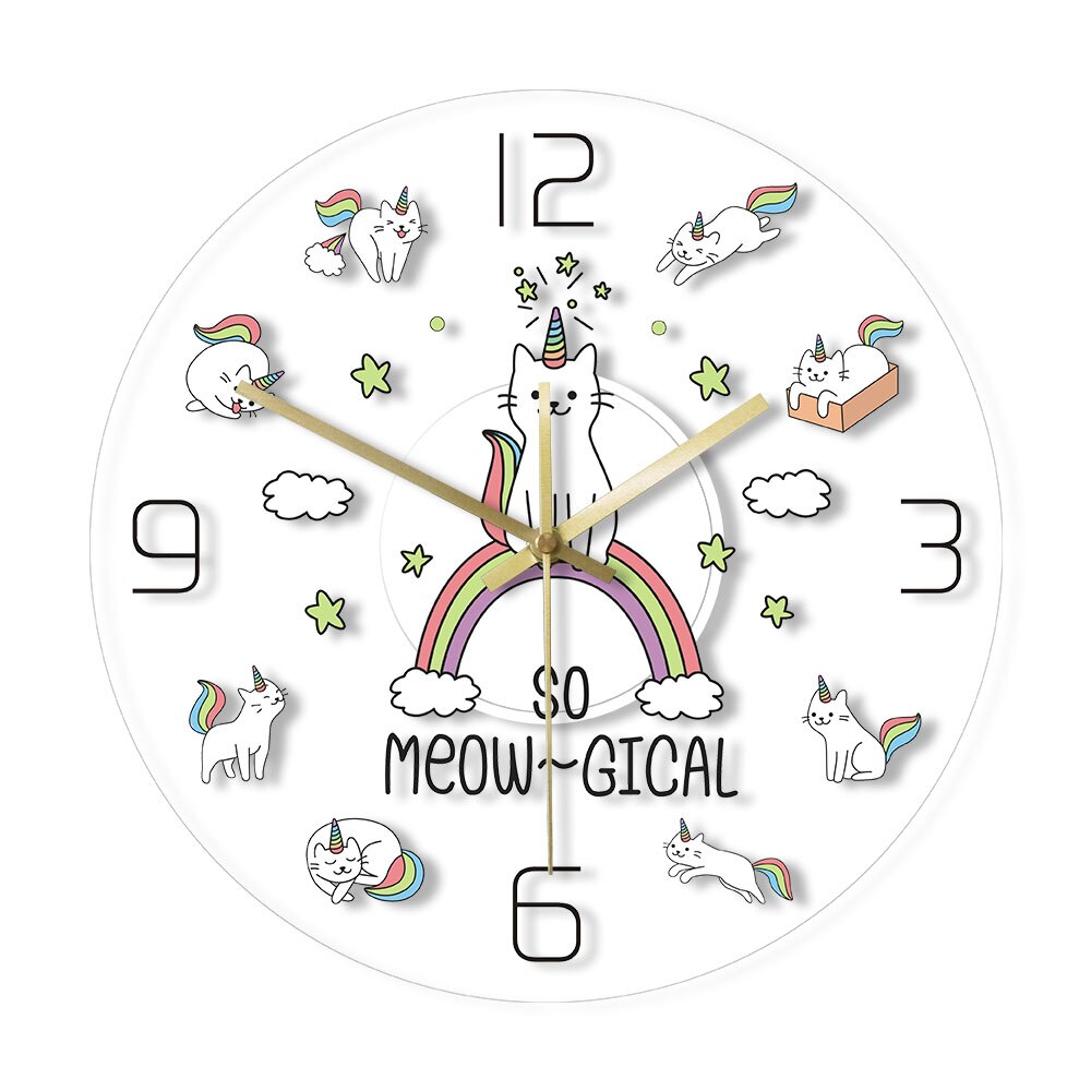 Gör ditt hem "meow-gical" med denna Gullig LED väggklocka med katt-enhörning!