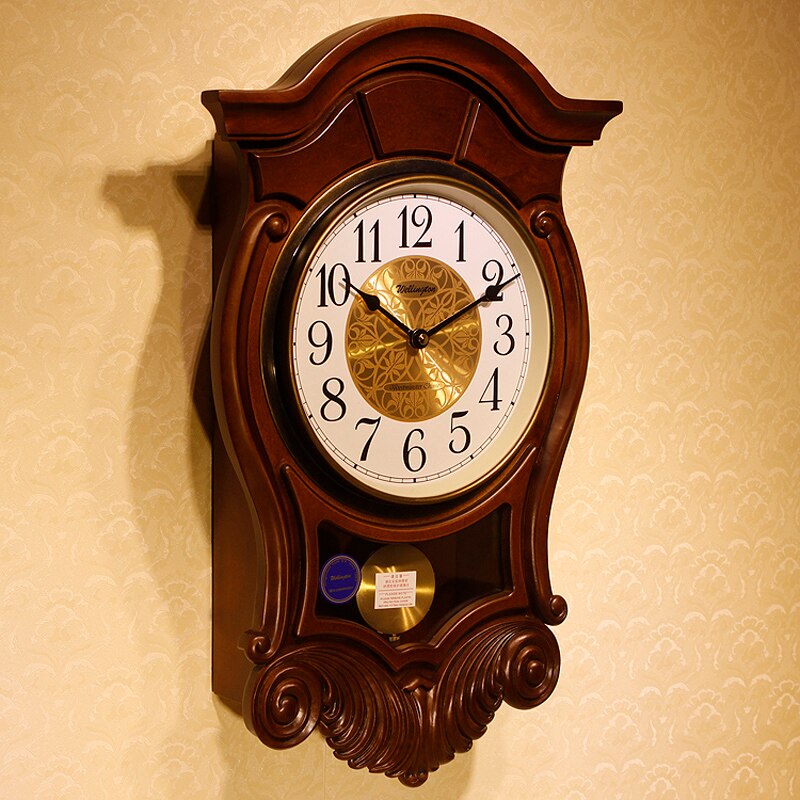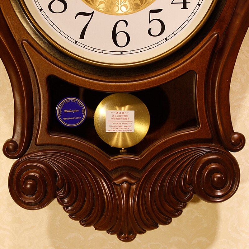 Det här pendeluret är mer än bara en klocka; det är en berättelse om tidlös design och kvalitet. Den rika träfinishen och de noggrant utformade detaljerna ger en känsla av lyx och beständighet som digitala klockor inte kan matcha. Föreställ dig den milda tickande ljudet som diskret fyller rummet och skapar en lugnande känsla. Visarna, med sin klassiska utformning, rör sig elegant över den guldiga urtavlan, som är prydd med en vacker mönster. Detta klassiska pendelur i trä för väggen är byggt för att hålla, med material som valts för sin skönhet och hållbarhet, vilket garanterar att det kommer att vara en central del av ditt hem under lång tid.