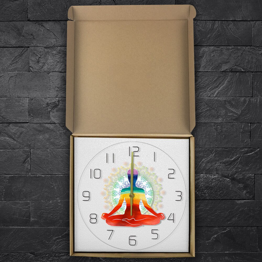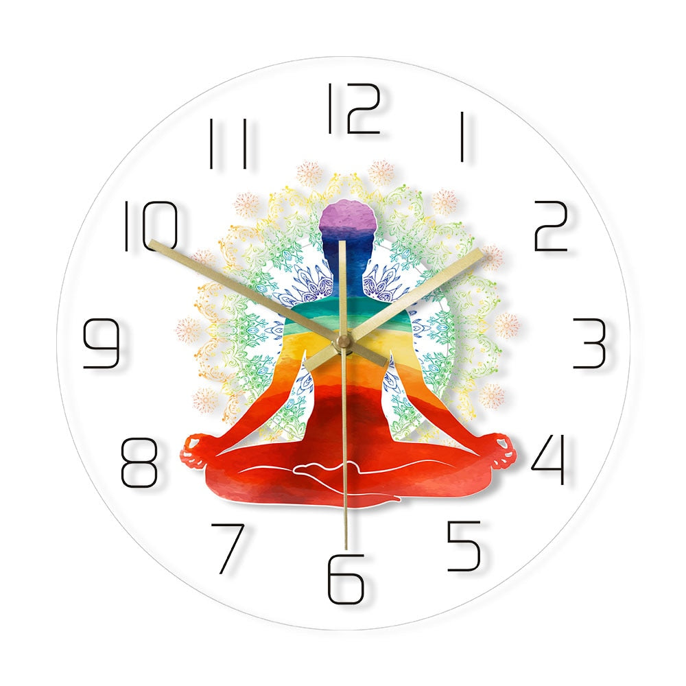 Vår LED väggklocka för yoga och meditation är designad för att inspirera och stödja din resa mot inre frid. Den livfulla bilden av chakrafärgerna som strålar från en mediterande figur skapar en visuell påminnelse om balans och energi. Oavsett om du är en erfaren yogi eller precis har börjat din meditationspraktik, kommer denna klocka att hjälpa dig att skapa en dedikerad plats för självreflektion. Dess diskreta elegans passar in i alla inredningsstilar och ger en touch av andlighet till ditt vardagsrum, sovrum eller kontor. Låt den bli en symbol för din strävan efter mindfulness och närvaro.