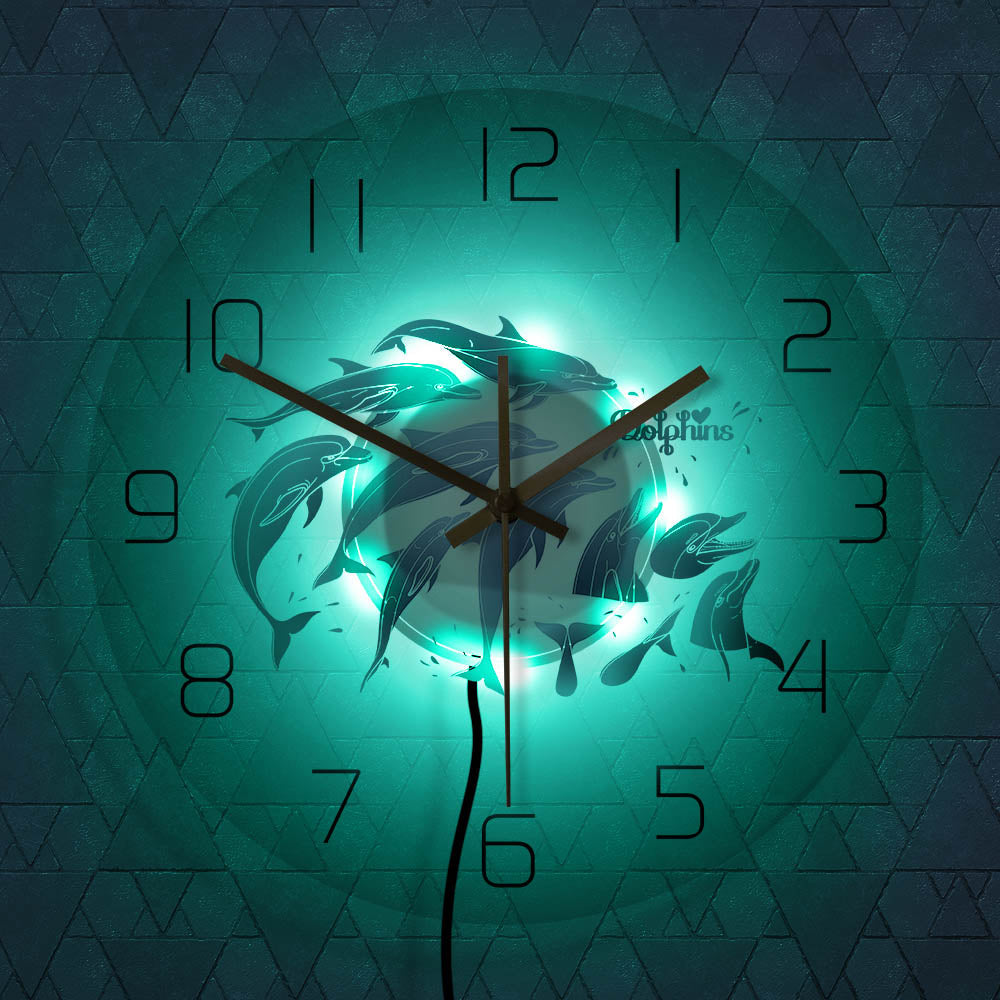 Upplev lugnet med vår LED väggklocka med hoppande delfiner