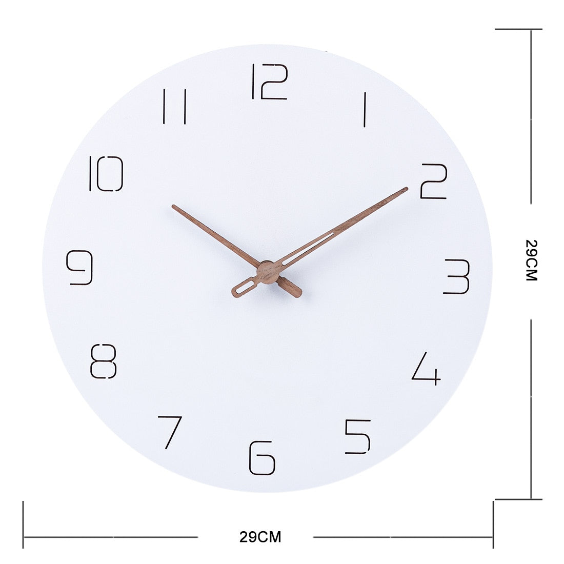 Förvandla ditt hem med vår eleganta och tidlösa Minimalistiska Skandinaviska Väggklocka i Trä. Denna klocka är mer än bara en tidsvisare; den är en inredningsdetalj som lyfter varje rum med sin enkla men sofistikerade design. Med sin rena, vita urtavla och de varmt färgade visarna i trä, utstrålar den en lugn och harmonisk känsla som är typisk för skandinavisk design. Föreställ dig hur den blir en naturlig blickpunkt i ditt vardagsrum, kök eller kontor, och smälter sömlöst in i både moderna och mer traditionella inredningsstilar. Den diskreta men tydliga numreringen gör den enkel att läsa av, samtidigt som den bibehåller sin minimalistiska estetik.