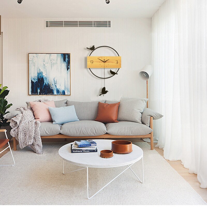 Funktioner hos vår Minimalistisk väggklocka i trä med fåglar: