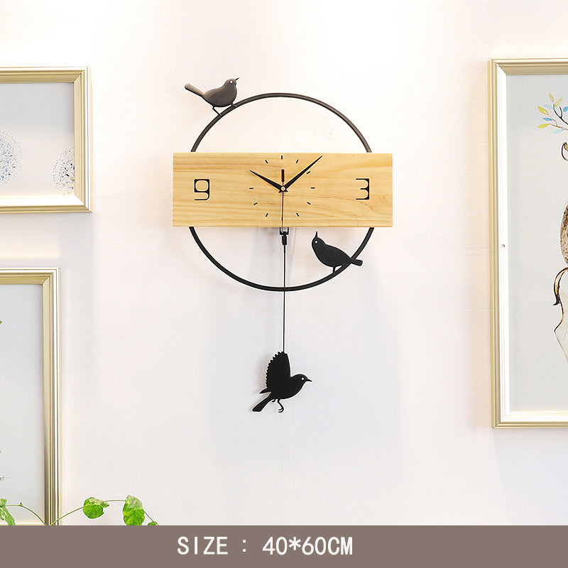Denna klocka är designad för att vara mer än bara funktionell. Den är ett statement. Föreställ dig hur de stiliserade fåglarna dansar runt klockans minimalistiska ansikte, med en av dem som elegant fungerar som pendel. Det är en konversationsstartare och en källa till lugn. Trämaterialet ger en varm och organisk känsla, medan de svarta metalldetaljerna ger en modern kontrast. Den är lätt att montera och kräver minimalt underhåll, vilket gör den till ett praktiskt och vackert tillägg till ditt hem.