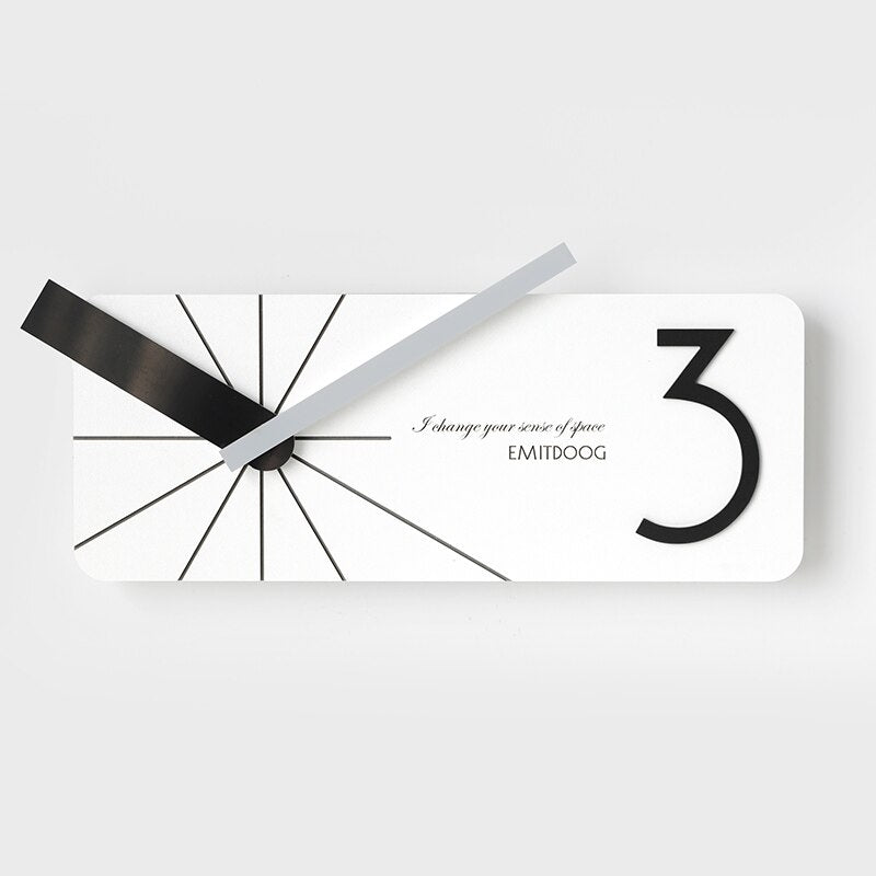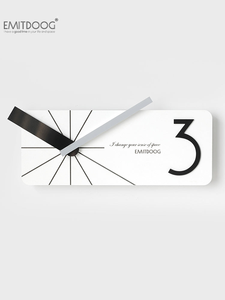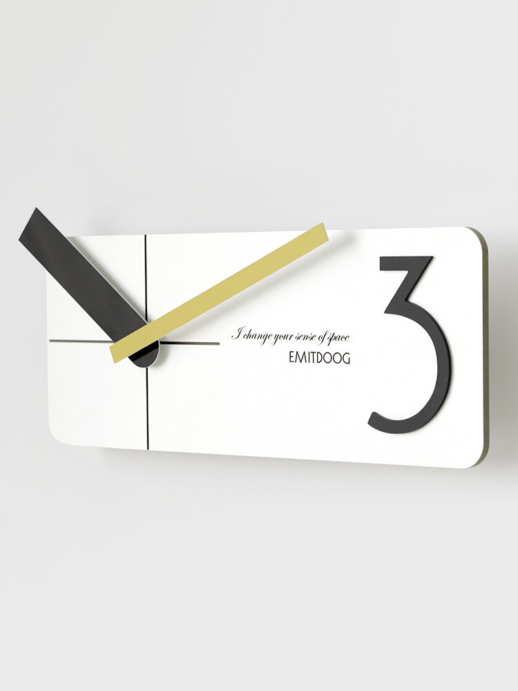 Denna moderna rektangulära väggklocka i trä är designad för att sticka ut. Med texten "I change your sense of pace" och "EMITDOOG" bjuder den in till reflektion och en annan syn på tid. Den stora, stiliserade "3:an" på urtavlan är inte bara en siffra, utan en designfeature som ger klockan karaktär och personlighet. Den är tillverkad med omsorg och precision, vilket garanterar att du får en högkvalitativ produkt som håller över tid. Den enkla upphängningen gör att du snabbt kan förvandla väggen till en dynamisk yta.