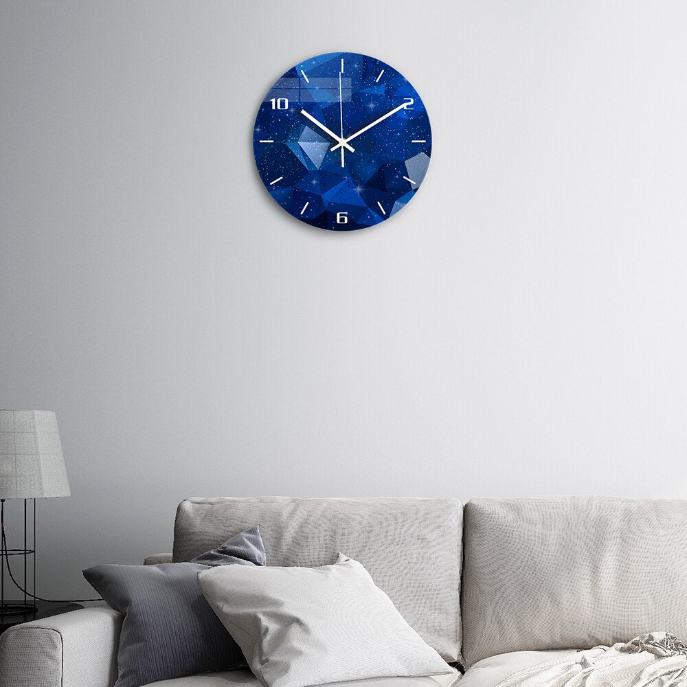 Vår moderna väggklocka med galaxmotiv design kombinerar en stilren estetik med en förtrollande inspiration från kosmos. Den djupblå bakgrunden, prydd med diskreta geometriska former och glittrande stjärnor, ger klockan en dynamisk och modern känsla. De tydliga vita siffrorna och visarna kontrasterar vackert mot galaxmotivet, vilket gör det enkelt att läsa av tiden samtidigt som det bidrar till den eleganta designen. Tillverkad med omsorg och precision, är denna klocka inte bara en praktisk detalj utan också en samtalsstartare som lyfter din inredning till nya höjder. Varför nöja dig med en vanlig klocka när du kan ha en som tar dig till stjärnorna?
