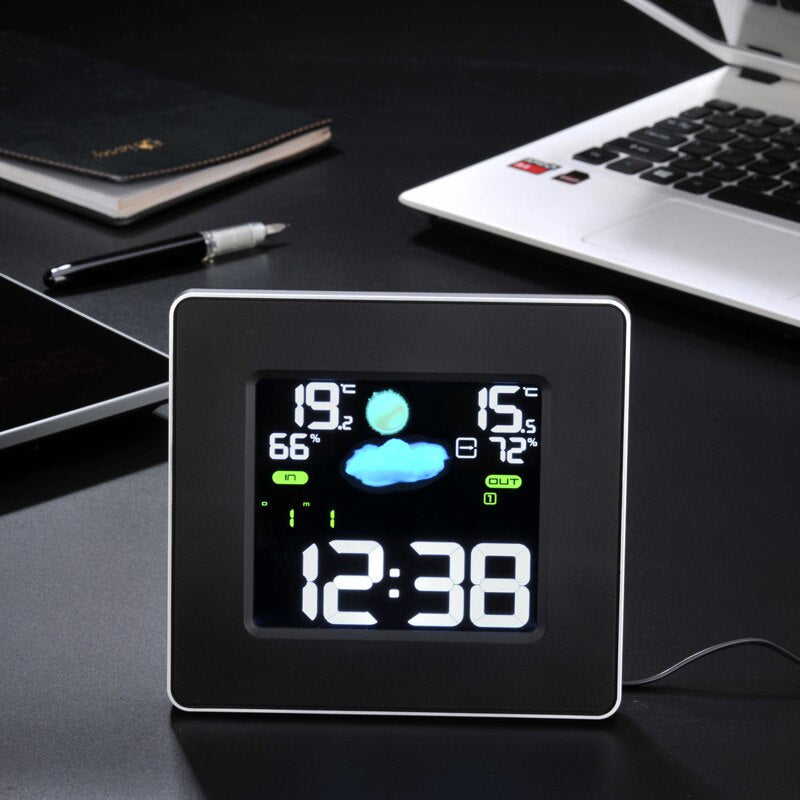 Är du trött på att vakna utan att veta vad dagen har att erbjuda? Med vår multifunktionella digitala väckarklocka med väder får du inte bara koll på tiden utan också den viktigaste väderinformationen direkt på displayen. Den här smarta väckarklockan är designad för att göra dina morgnar smidigare och din vardag mer organiserad. Tänk dig att kunna se både inomhus- och utomhustemperatur, luftfuktighet och till och med en väderprognos med en solig dag eller molnigt, innan du ens kliver ur sängen. Det är den perfekta lösningen för alla som vill starta dagen väl förberedda, oavsett om det är för att välja rätt kläder eller planera utomhusaktiviteter.