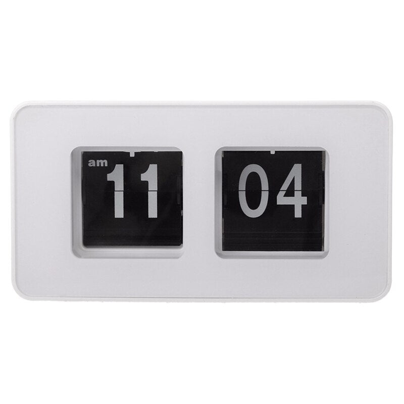 Ge ditt skrivbord en touch av klassisk charm med vår fantastiska retro digitala flip-klocka. Denna klocka är mer än bara en tidsvisare; den är ett statement. Föreställ dig hur den elegant visar tiden, sekund för sekund, med sina unika flikande siffror som ger en nostalgisk känsla. Perfekt för dig som uppskattar både funktion och estetik, och vill ha en produkt som sticker ut från mängden. Dess rena, vita ram och tydliga svarta siffror med "am" indikation smälter perfekt in i alla inredningsstilar, från minimalistiskt till industriellt.