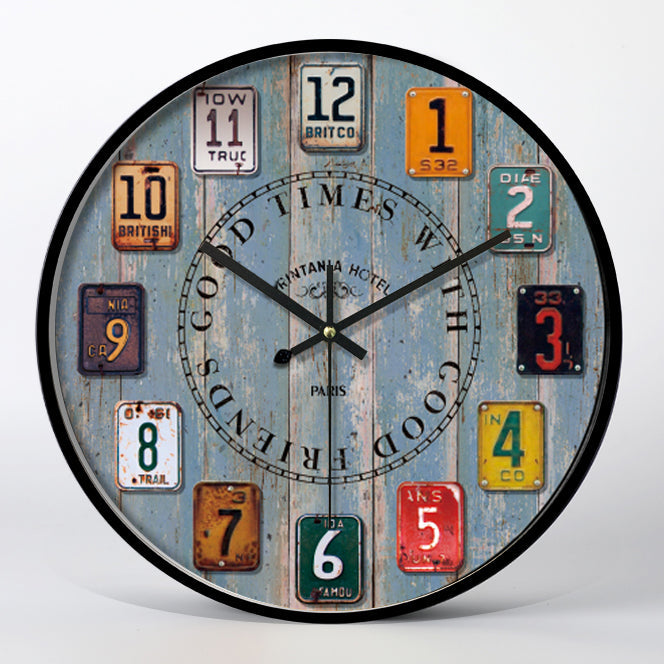Ge ditt hem en tidslös charm med denna retro väggklocka med registreringsskyltar.