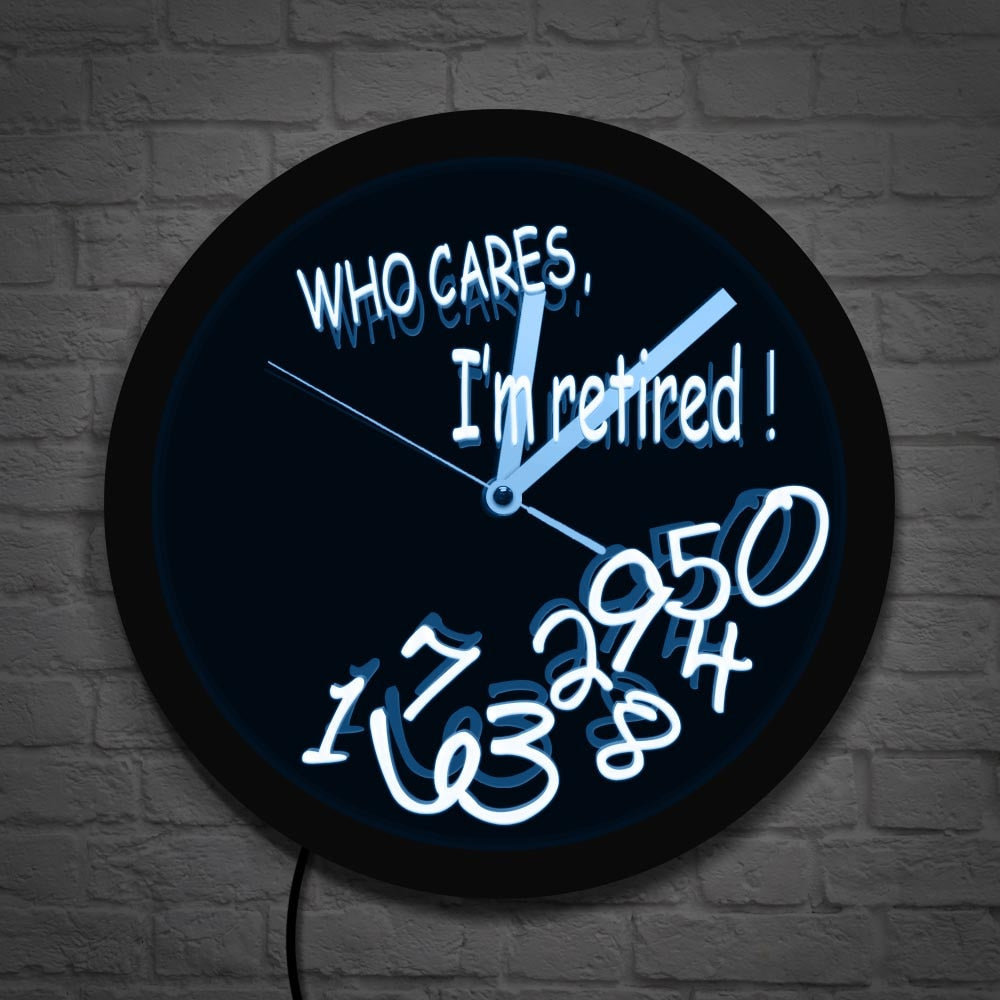 Är du redo att kasta alla tidsplaner överbord och omfamna friheten som pensionen ger? Då är vår roliga väggklocka för pensionärer med LED precis vad du behöver! Denna unika klocka är mer än bara en tidsmätare – den är en humoristisk påminnelse om att nu är det dags att koppla av och göra precis vad du vill, när du vill. Med texten "WHO CARES, I'M RETIRED!" och siffror som dansar fritt på urtavlan, signalerar denna klocka att tidtabellerna tillhör det förflutna. Det är den perfekta presenten till dig själv eller en vän som förtjänar att njuta av varje ögonblick av sin välförtjänta pension.