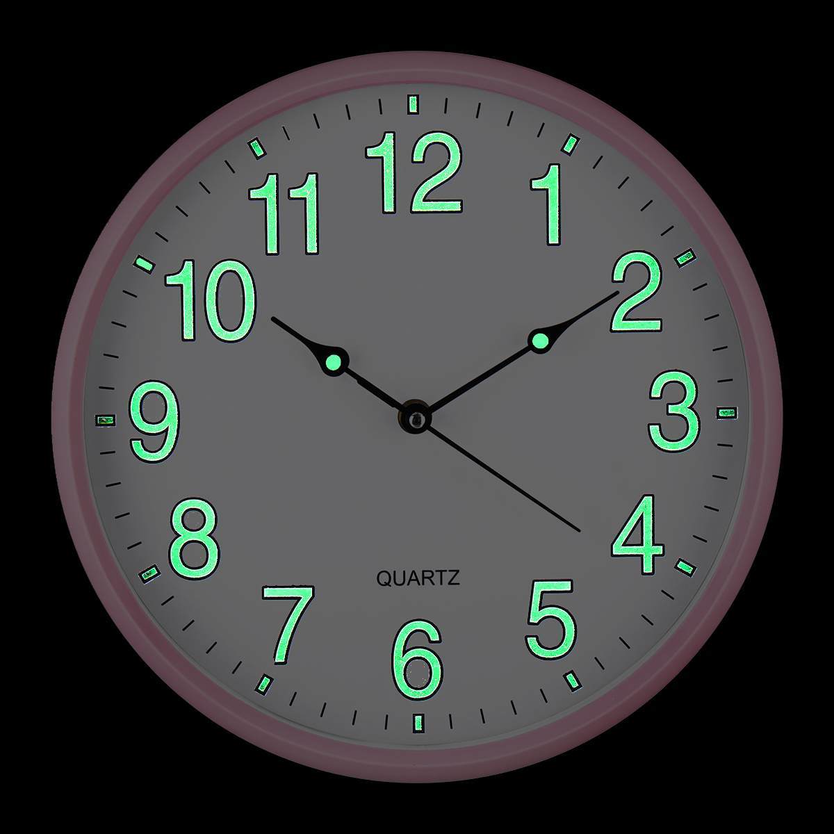 Rosa väggklocka med självlysande siffror – Se tiden även i mörkret