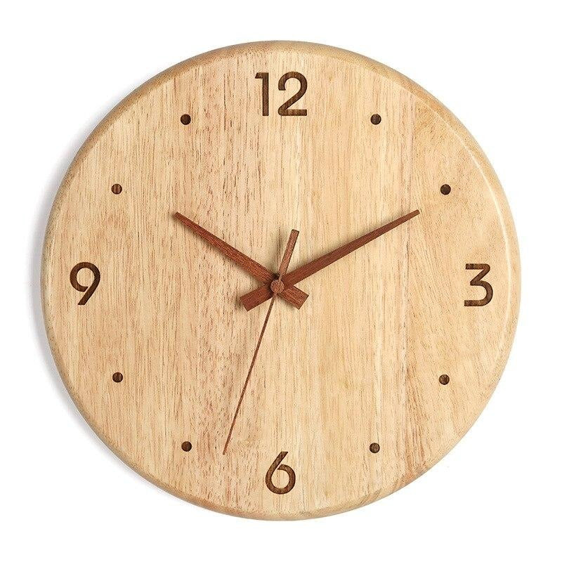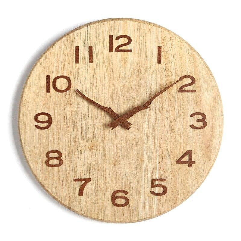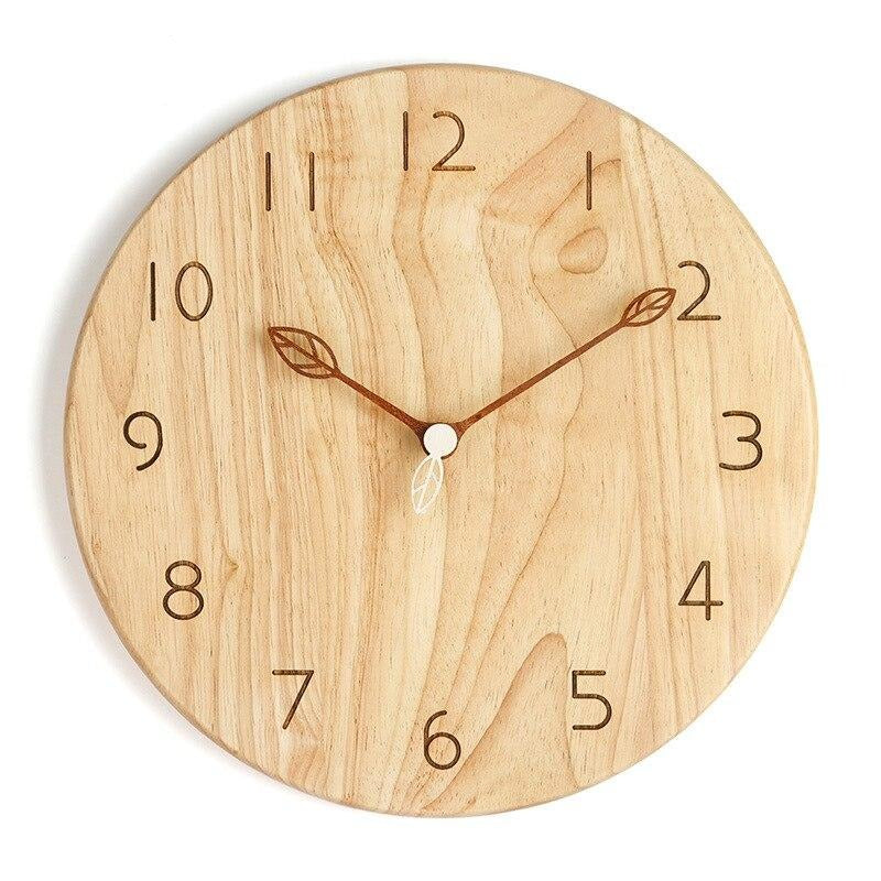 Vi vet att du söker efter produkter som är både funktionella och estetiskt tilltalande. Vår väggklocka är tillverkad av högkvalitativt ljust trä som ger en känsla av äkthet och hållbarhet. De tydliga, bruna siffrorna och visarna kontrasterar vackert mot den ljusa träytan, vilket gör det enkelt att läsa av tiden även på avstånd. Det är den perfekta kombinationen av enkelhet och sofistikering, designad för att komplettera ditt hem utan att ta över.