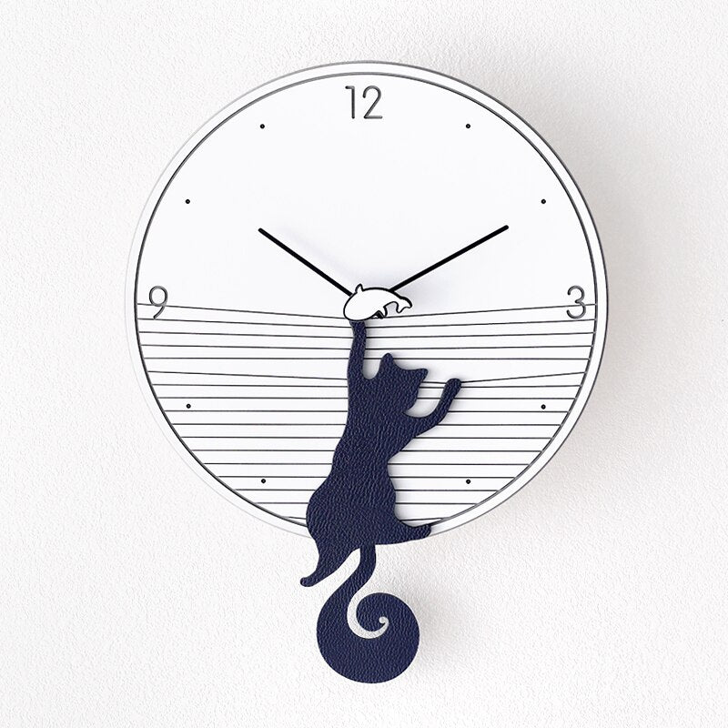 Söt väggklocka med klättrande katt – En lekfull tidmätare för ditt hem