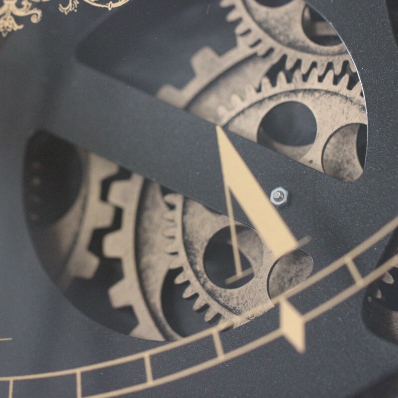 Varje detalj på denna stora väggklocka är noggrant utformad för att ge dig en exceptionell upplevelse. De synliga kugghjulen rör sig mjukt och ger en levande dimension till klockans yta, vilket låter dig uppskatta ingenjörskonsten bakom. Det är inte bara en klocka, det är en levande skulptur som berättar sin egen historia om tid och rörelse. Den robusta konstruktionen säkerställer att denna klocka blir en varaktig del av ditt hem, och dess imponerande storlek garanterar att den inte går obemärkt förbi. Låt denna klocka bli mittpunkten i ditt rum och fascinera dina gäster med sin unika och mekaniska skönhet.
