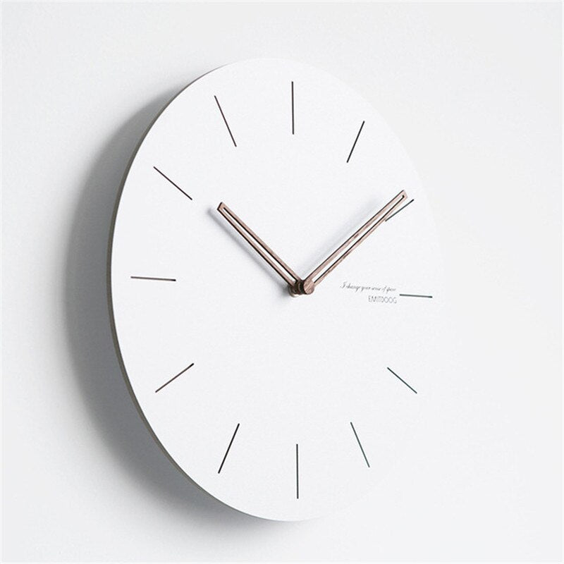 Vill du ha en klocka som smälter in perfekt i ditt hem utan att störa? Då är vår tysta minimalistiska väggklocka i vitt det perfekta valet för dig. Den här klockan är designad för att ge dig exakt tid på ett elegant och diskret sätt. Föreställ dig hur den lyfter fram din inredning och ger en känsla av lugn och ordning. Den vita urtavlan med subtila svarta markeringar och eleganta kopparfärgade visare skapar en tidlös look som passar alla stilar, från modern till skandinavisk minimalism. Den här klockan är mer än bara en tidsmätare; den är en del av ditt hem som skapar en harmonisk atmosfär.