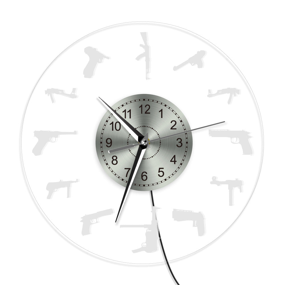 Unik väggklocka med vapen och LED-ljus: Tidsmätare för den passionerade samlaren