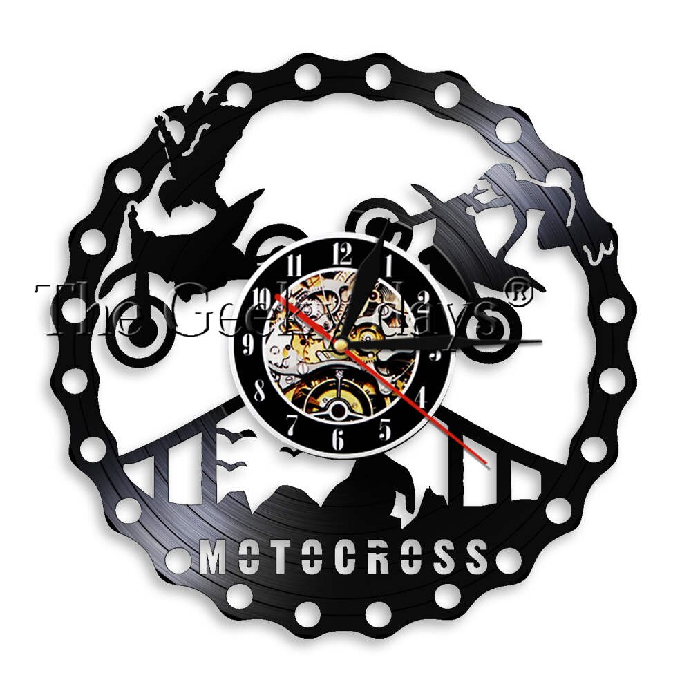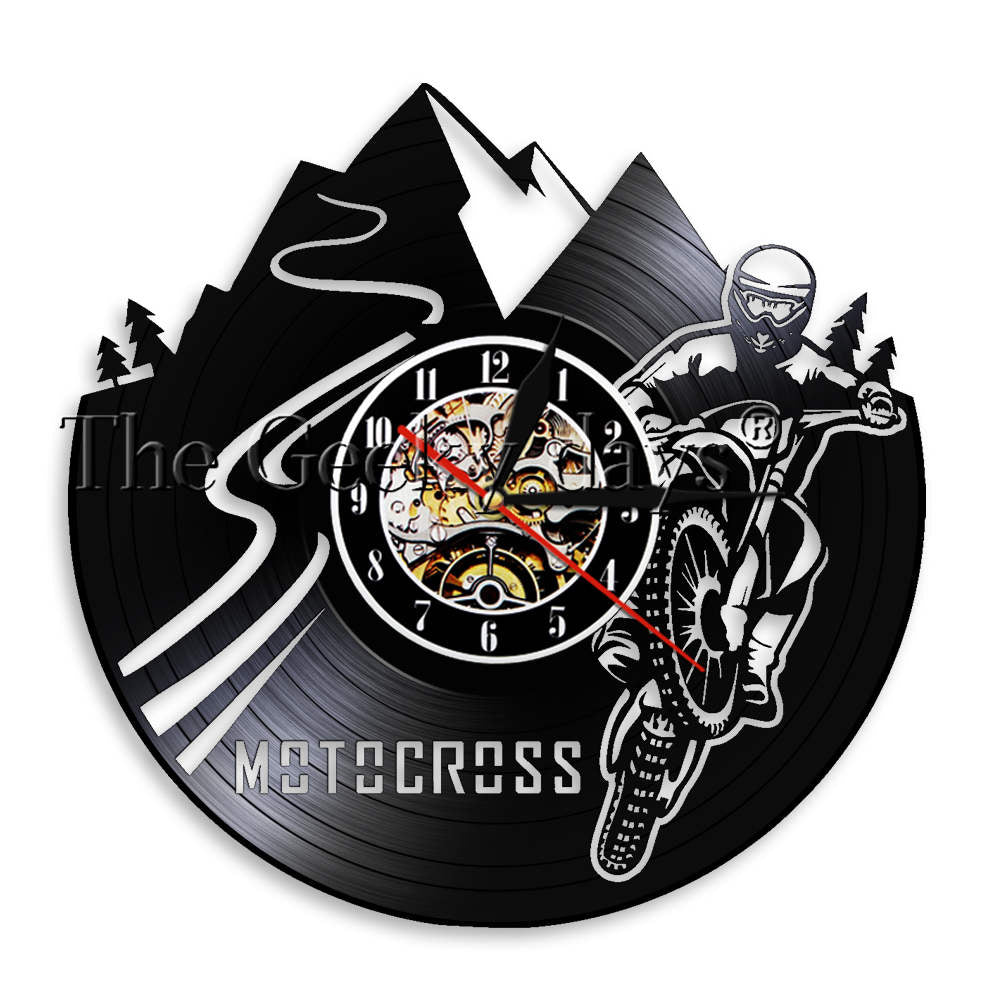 Unik Väggklocka av Vinylskiva med Motorcykel – Perfekt för Älskare av Extremsport!