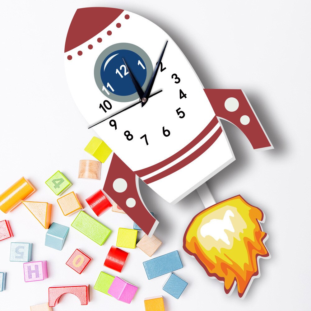 Väggklocka för barnrum med raket – Starta fantasiresan!
