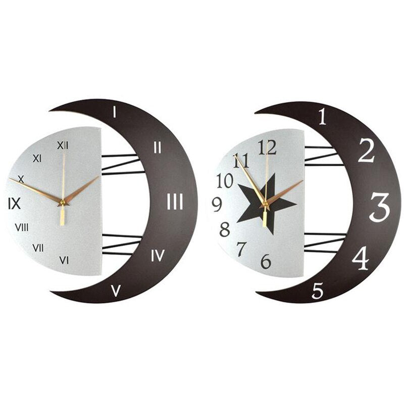 Förvandla ditt hem med denna förtrollande väggklocka i form av en halvmåne. Denna klocka är mer än bara en tidsvisare; den är ett konstverk som förenar funktion och design på ett unikt sätt. Den svarta halvmånen, med sina tydliga siffror från 1 till 5, omfamnar en elegant silverfärgad urtavla med siffror från 6 till 12 och en stjärnformad detalj i mitten. De gyllene visarna ger en lyxig touch som fångar ögat. Föreställ dig hur denna klocka blir mittpunkten i ditt vardagsrum, sovrum eller kontor och skapar en känsla av lugn och harmoni. Den är perfekt för dig som uppskattar både stil och funktionalitet, och som vill ha en inredningsdetalj som sticker ut.