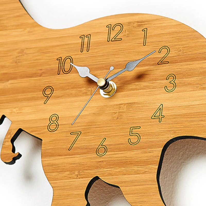 Egenskaper hos vår Väggklocka i trä formad som dinosaurie: