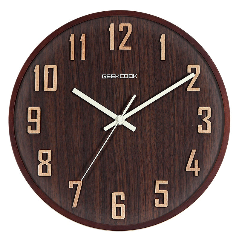 - Minimalistiska visare i matchande mörkbrun färg som kompletterar siffrorna.