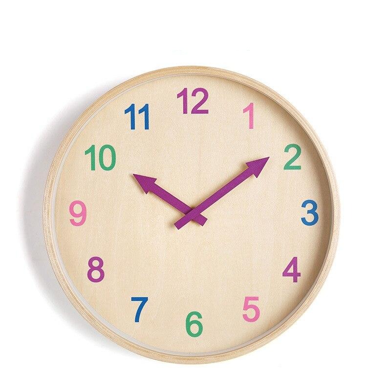 Fördelar med vår Väggklocka i trä med färgglada siffror