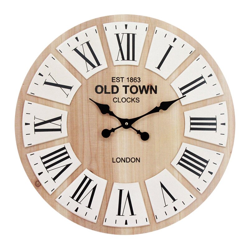 Ge ditt hem en touch av klassisk charm med vår fantastiska väggklocka i trä med retrodesign. Denna klocka är mer än bara en tidsvisare; den är ett konstverk som för tankarna till svunna tider. Tillverkad av högkvalitativt trä med en ljus, naturlig finish, smälter den sömlöst in i både moderna och mer traditionella inredningar. De stora, tydliga romerska siffrorna i svart mot en vit bakgrund säkerställer enkel avläsning, medan den autentiska "OLD TOWN CLOCKS LONDON EST 1863"-inskriptionen ger den en unik och tidlös karaktär. Det här är den perfekta detaljen för att skapa en varm och inbjudande atmosfär i ditt vardagsrum, kök eller kontor.