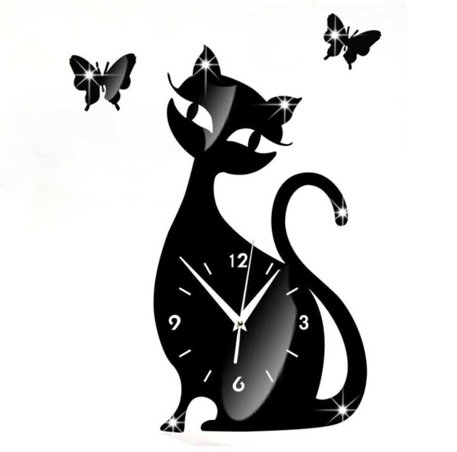 Unik design: Väggklocka klistermärken katt och fjärilar som sticker ut