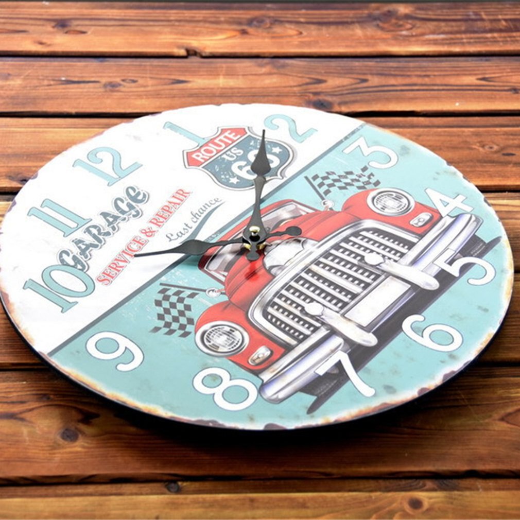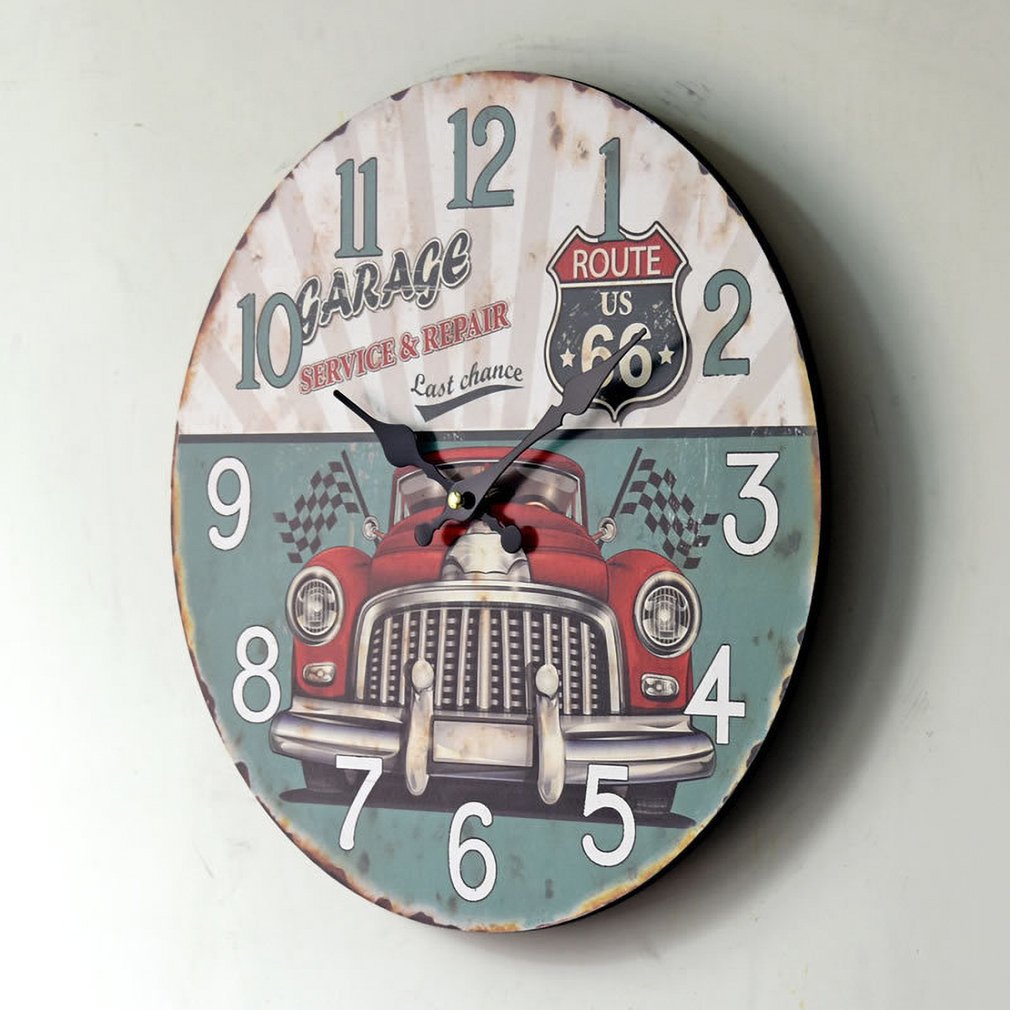 Denna väggklocka är designad med en autentisk, rustik känsla som ger intryck av att den har en rik historia. Den klassiska bilden av en röd veteranbil, komplett med skyltar som proklamerar "GARAGE SERVICE & REPAIR" och den ikoniska "ROUTE US 66", skapar en oemotståndlig charm. Den slitna looken med "rostiga" kanter bidrar till den vintage-autentiska stilen, vilket gör den till ett perfekt komplement till ett garage, en mancave, ett vardagsrum eller varför inte ett kök med retrokänsla. Låt denna klocka bli det centrala blickfånget som påminner dig om svunna tider.