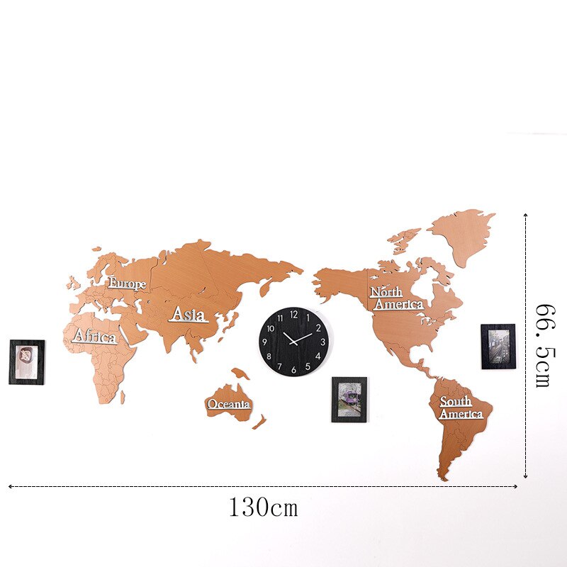 Drömmer du om att resa jorden runt eller vill du bara ha en unik och inspirerande inredningsdetalj? Då är vår väggklocka världskarta i trä med fotoramar perfekt för dig! Denna fantastiska väggdekoration kombinerar funktionalitet med personlig charm. Föreställ dig att kunna se tiden samtidigt som du blickar ut över kontinenterna, namngivna för att ge dig en känsla av äventyr. Klockan är elegant integrerad i kartan och de medföljande fotoramarna ger dig möjlighet att visa upp dina favoritminnen från resor eller speciella ögonblick. Det är mer än bara en klocka – det är en berättelse på din vägg.