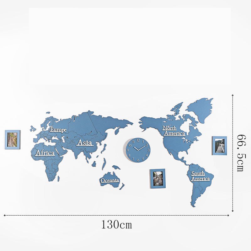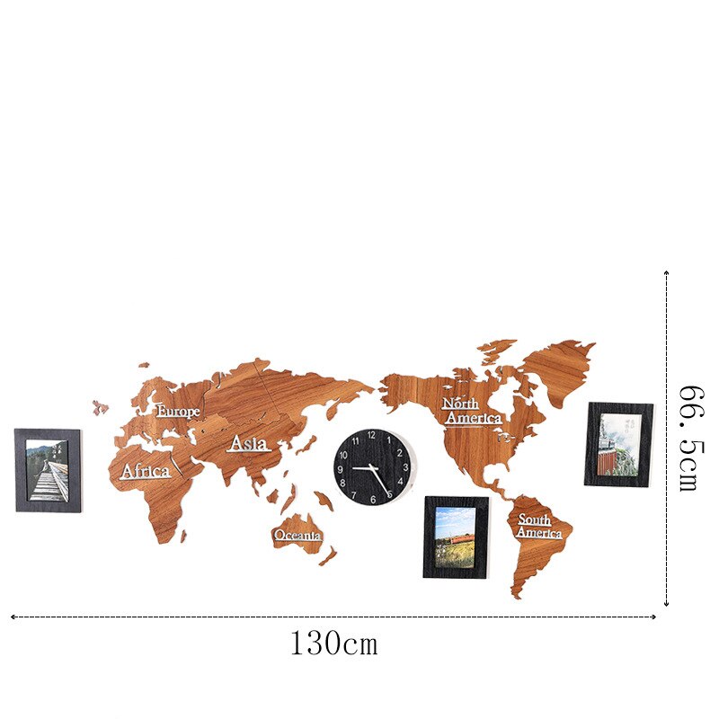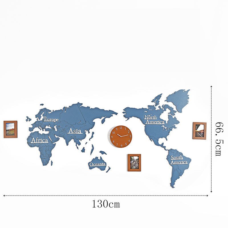 Upplev elegans och funktionalitet med vår Väggklocka världskarta i trä med fotoramar. Designad för att försköna ditt hem och hålla tiden med stil, kombinerar den raffinerad design med praktisk användbarhet.