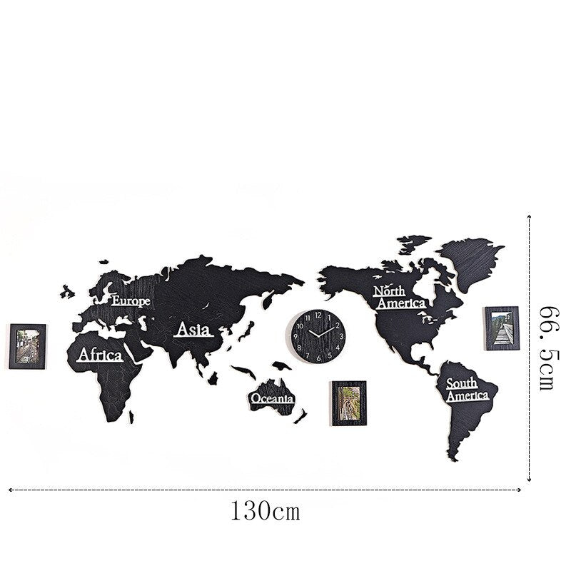 Din nästa stora äventyr börjar med vår väggklocka världskarta i trä med fotoramar.