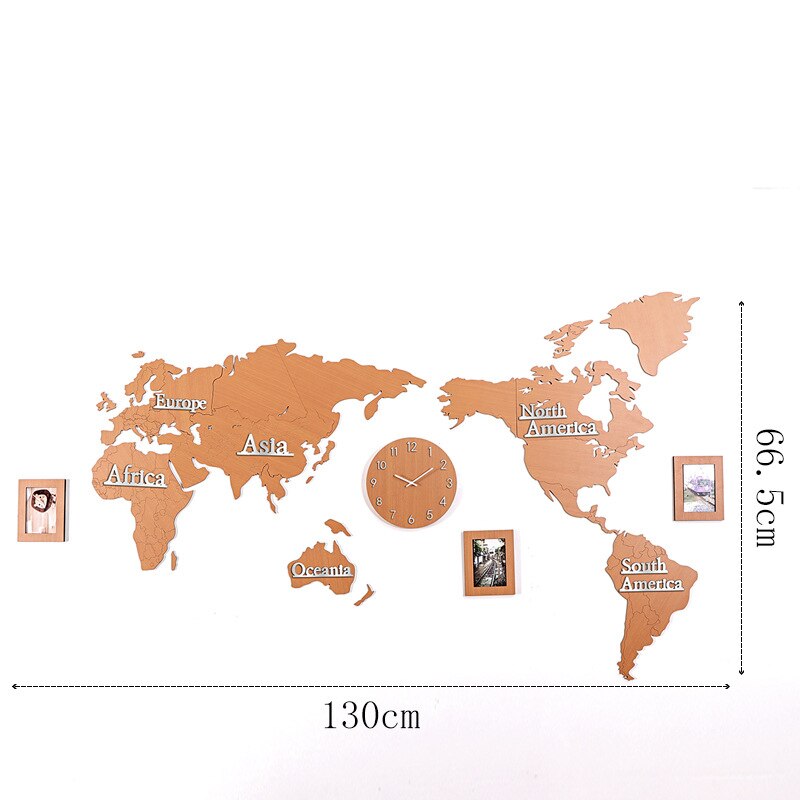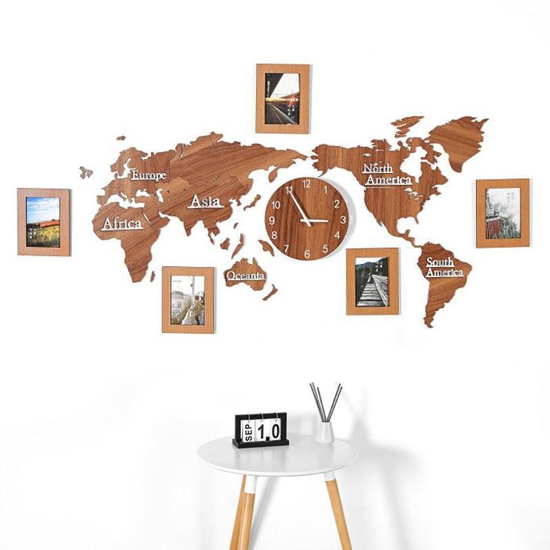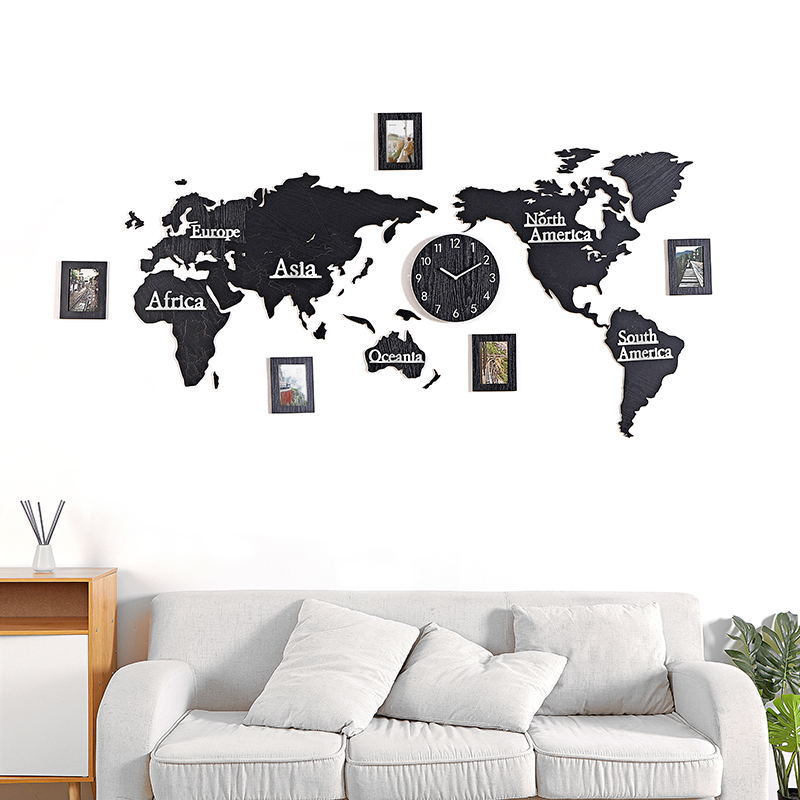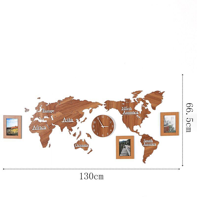 Skapa din egen tidslinje med vår väggklocka världskarta i trä med fotoramar